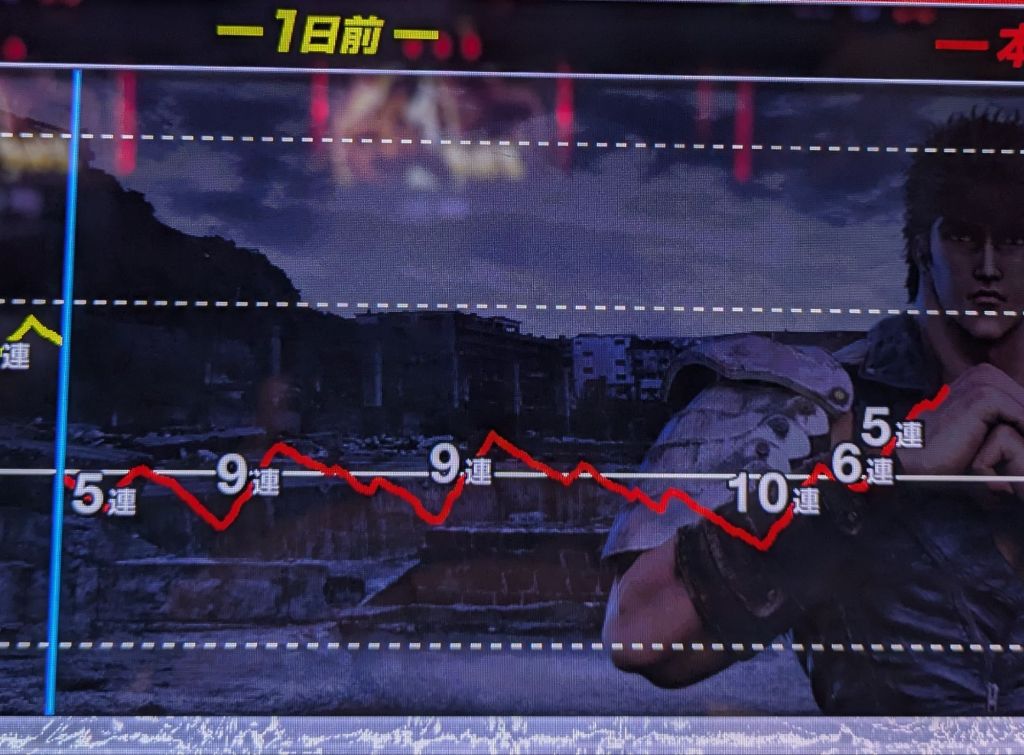 今日は強めのイベントの店に行きました。朝から投資ほぼ0枚で当たって無想転生。4日連続で5回目の無想転生です。保証とストック抜いたら2連くらいで終わりました笑